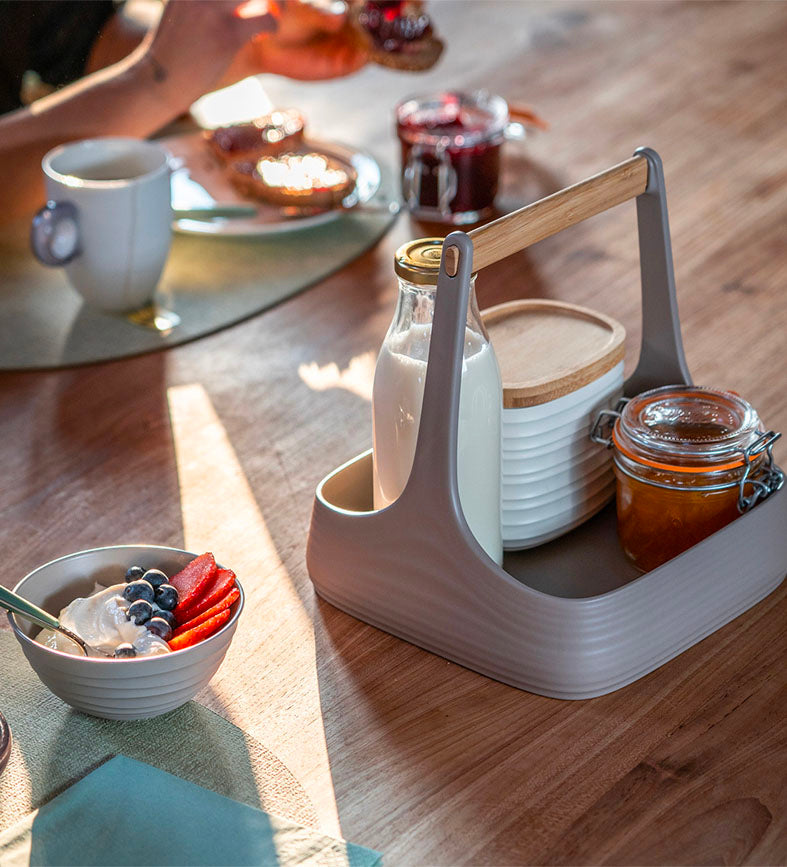 PLÁSTICO RECICLADO. Con el Programa Circle, se ha iniciado un camino que da una nueva belleza al material reciclado, utilizando la investigación, la tecnología y el diseño para crear objetos nuevos, duraderos, reciclables y con estilo, todos hechos en Italia. Circle integra aún más la sostenibilidad en el modelo de negocio, añadiendo un enfoque de circularidad a la durabilidad y la reciclabilidad que siempre han sido características clave de las colecciones Guzzini.