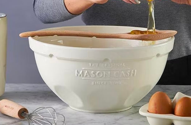 Mason Cash había estado produciendo tazones para mezclar durante la década de 1800, pero en 1901 diseñaron y fabricaron el primer icónico tazón para mezclar de Mason Cash. El diseño del cuenco ha resistido la prueba del tiempo y se ha convertido en un clásico del diseño. De hecho, el diseño apenas se ha modificado desde entonces, razón por la cual la marca sigue siendo reconocida hoy en día por sus utensilios de cocina clásicos e innovadores.